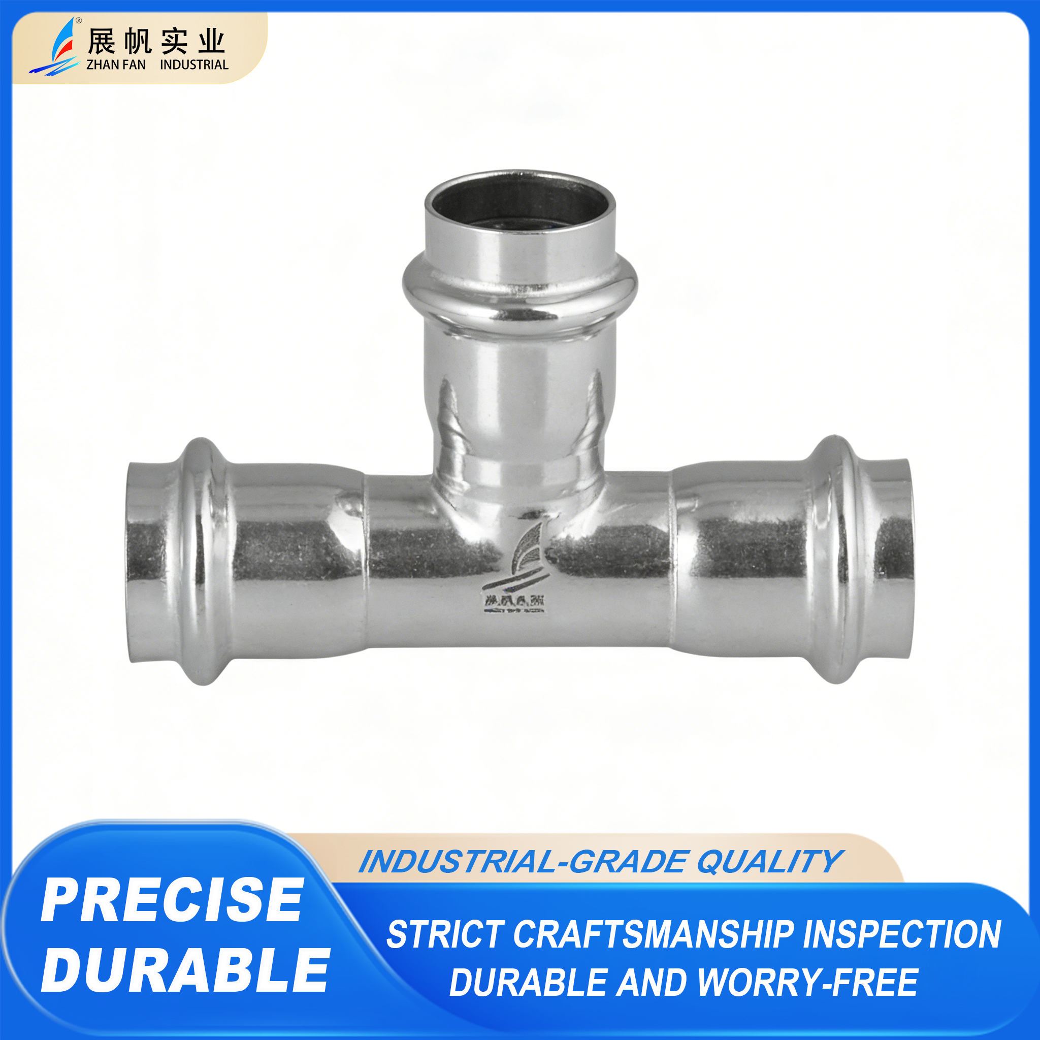 Encaixe de três vias de diâmetro igual em aço inoxidável